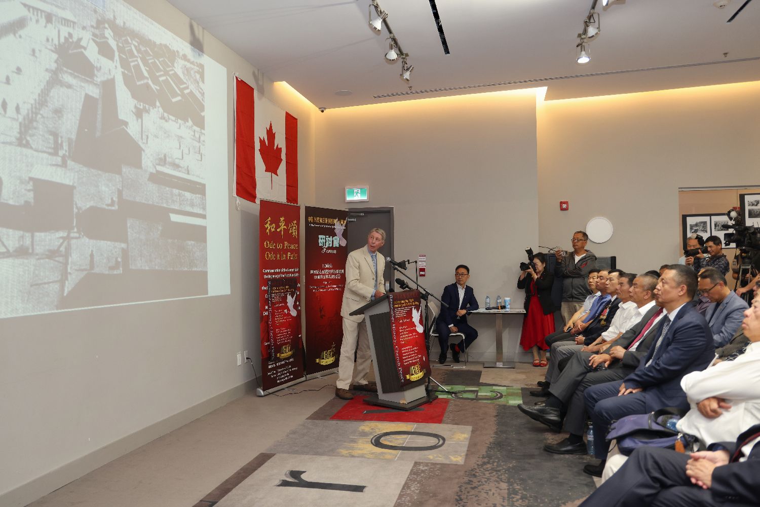 加联邦参议员胡元豹在视频致辞中回顾了加拿大华人在遭遇制度性歧视时期仍英勇投身反法西斯战争,最终为族群赢得应有的尊重与社会地位的历史,表示回顾历史有助于加拿大社会反思今日在亚太地区的定位以及与各族裔社区的关系。