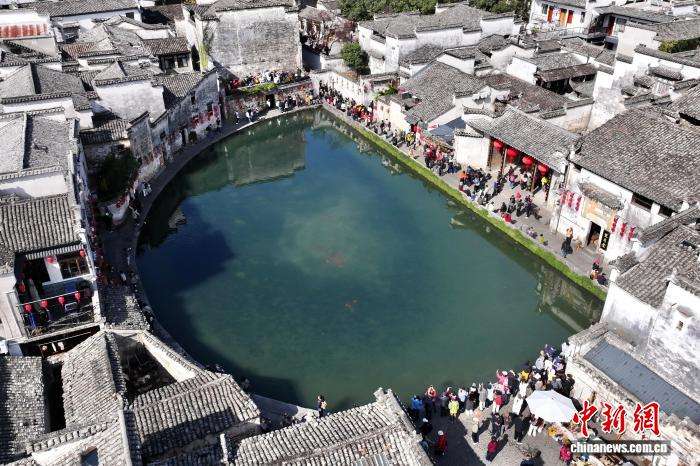 11月18日,航拍宏村月沼。(无人机照片)中新社记者 韩苏原 摄