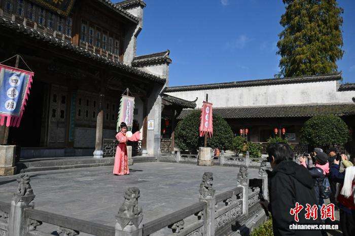 11月18日,海外华文媒体在宏村观看表演。中新社记者 韩苏原 摄