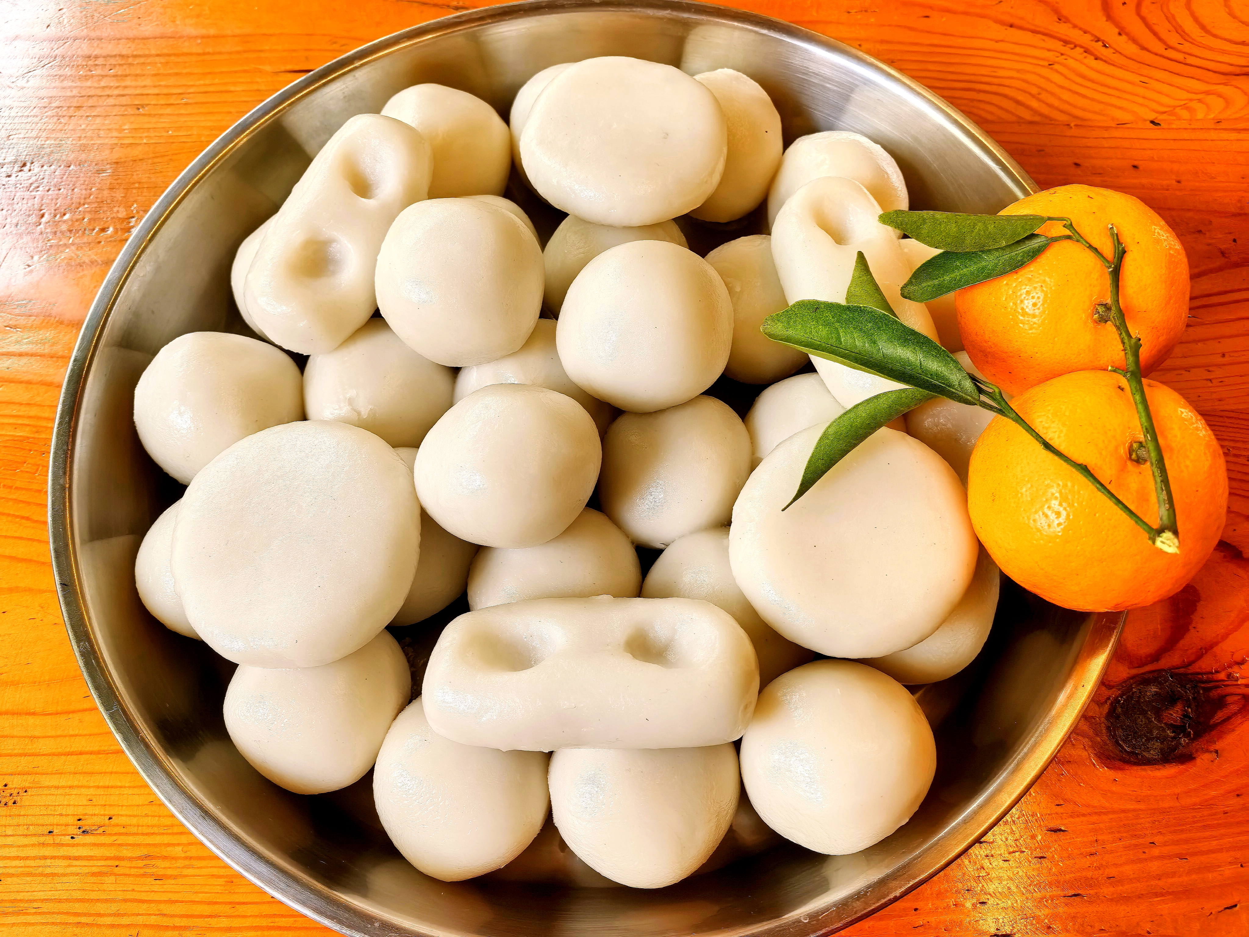 据介绍,江门台山、开平部分地区都有春节前做牛栏圆的习惯。牛栏圆又称牛栏糍、牛栏丸,将沸水分两三次倒入提前备好的粘米粉中,趁热搅拌后,反复揉搓成粉团,揉至柔软、光滑且富有弹性,然后切成块,搓圆或捏出需要的形状,最后放入炊糍笼隔水蒸制一小时即成。