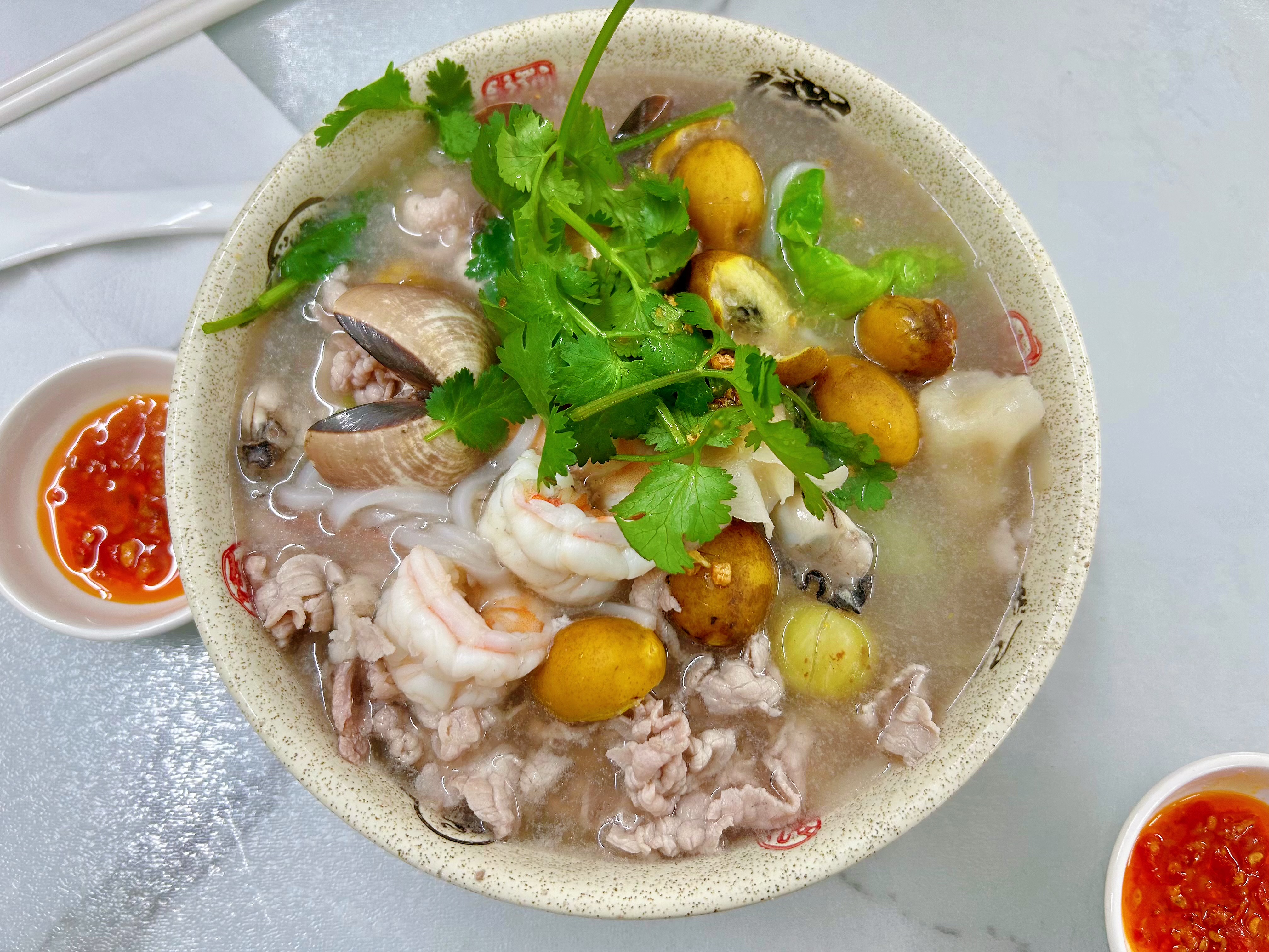 据悉,油柑、橄榄粿条汤汤底为猪骨汤底,主要食材是粿条。配料丰富,既有鲜虾、生蚝、花甲、车白,又有猪肉、猪心、猪肾和肉丸、鱼丸、肉卷、肉饼、鱼胶等,还包括生菜、西洋菜、枸杞叶等蔬菜,最后下点蒜头油和南姜末,配料由顾客自己选择,丰俭由人。