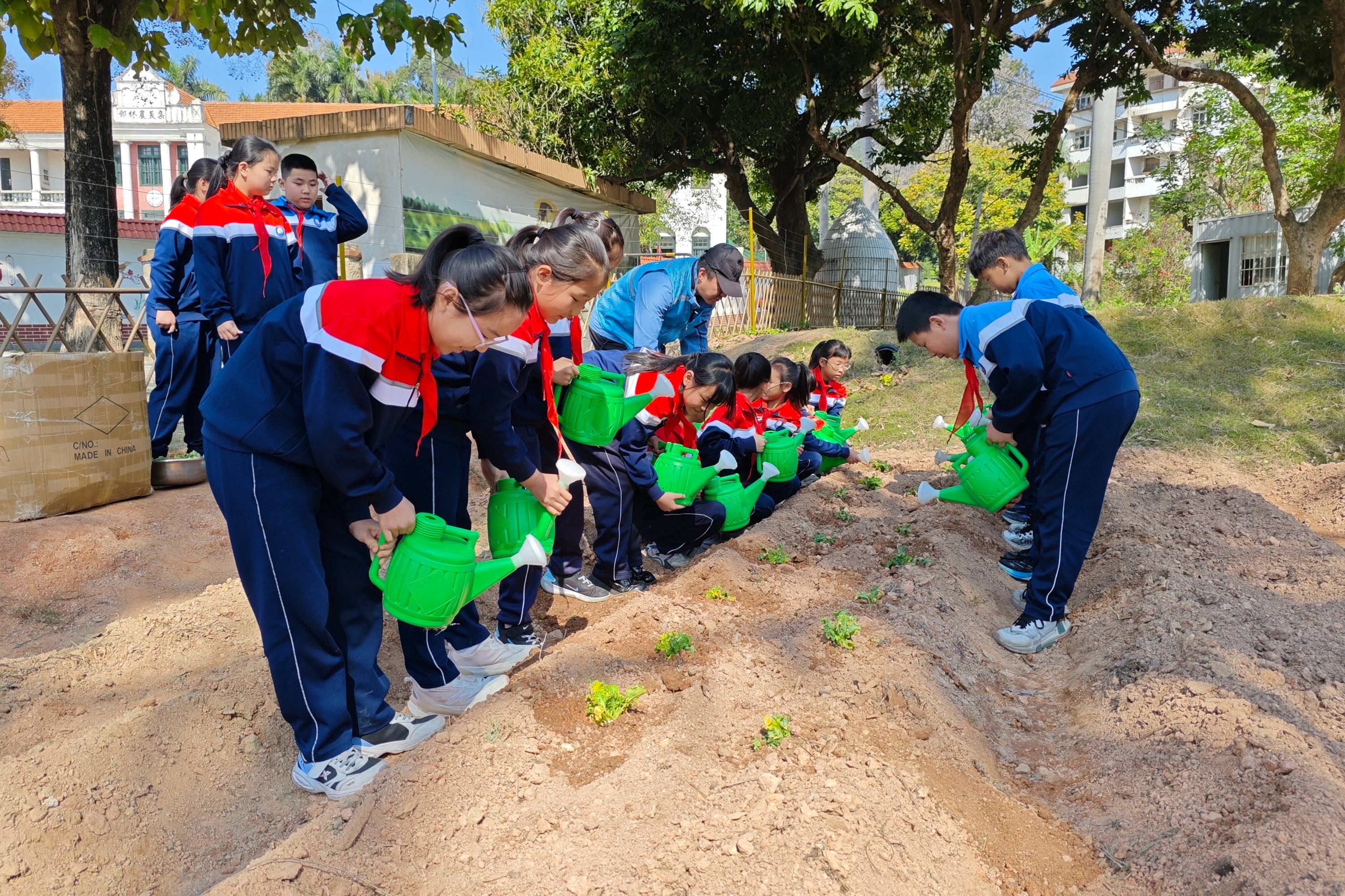 3月11日,嘉庚学子们在集美农林学校耕创农场体验农耕劳作。 吴冠标 摄