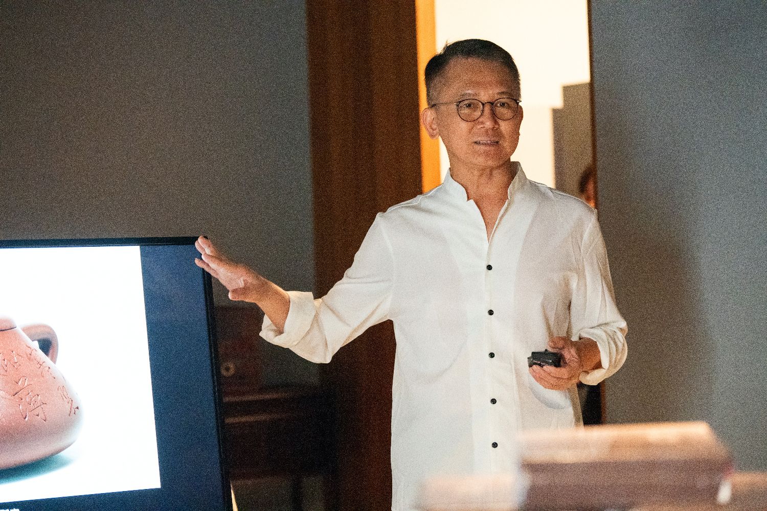 2004年起,重新投入大学课堂、钻研艺术史的黄健亮时常参加两岸学术研讨会,其研究也从近代工艺拓至明清制壶史。他最自豪的学术贡献莫过于前往京都万福寺,系统梳理明末清初隐元禅师赴日开创佛教黄檗宗所携带的两把时大彬制紫砂壶,论文由台北故宫博物院文物月刊登载,被认为丰富了中国器物史、中日宗教交流史研究。