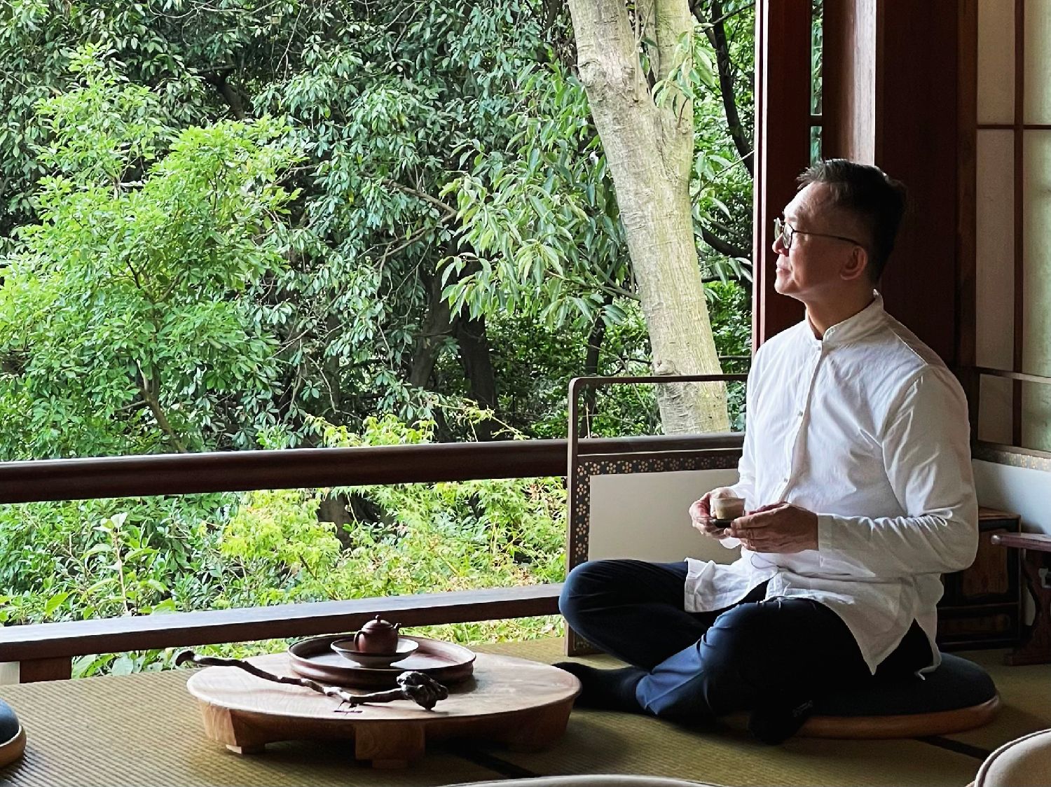 2024年起,黄健亮受邀入驻大陆短视频平台,尝试在三分钟时长的影像中推介茶文化。图为黄健亮在视频拍摄现场。受访者供图