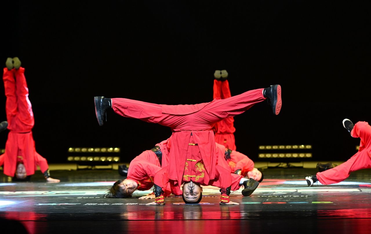 8月4日,2025海峡两岸(福州)霹雳舞大赛总决赛在福建省福清市举行,图为功夫街舞表演。 中新社记者 吕明 摄