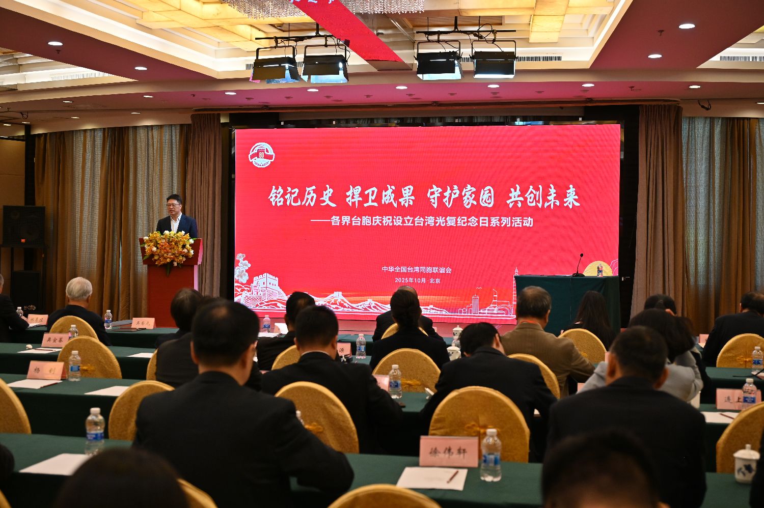 中新社北京10月26日电(记者 徐雪莹)由全国台联主办的“铭记历史捍卫成果守护家园共创未来”——各界台胞庆祝设立台湾光复纪念日系列活动26日在北京举行。多位嘉宾在活动期间受访时表示,以国家名义设立台湾光复纪念日,是反“独”促统斗争中的重要里程碑,有助于强化两岸同胞共同的民族历史记忆。