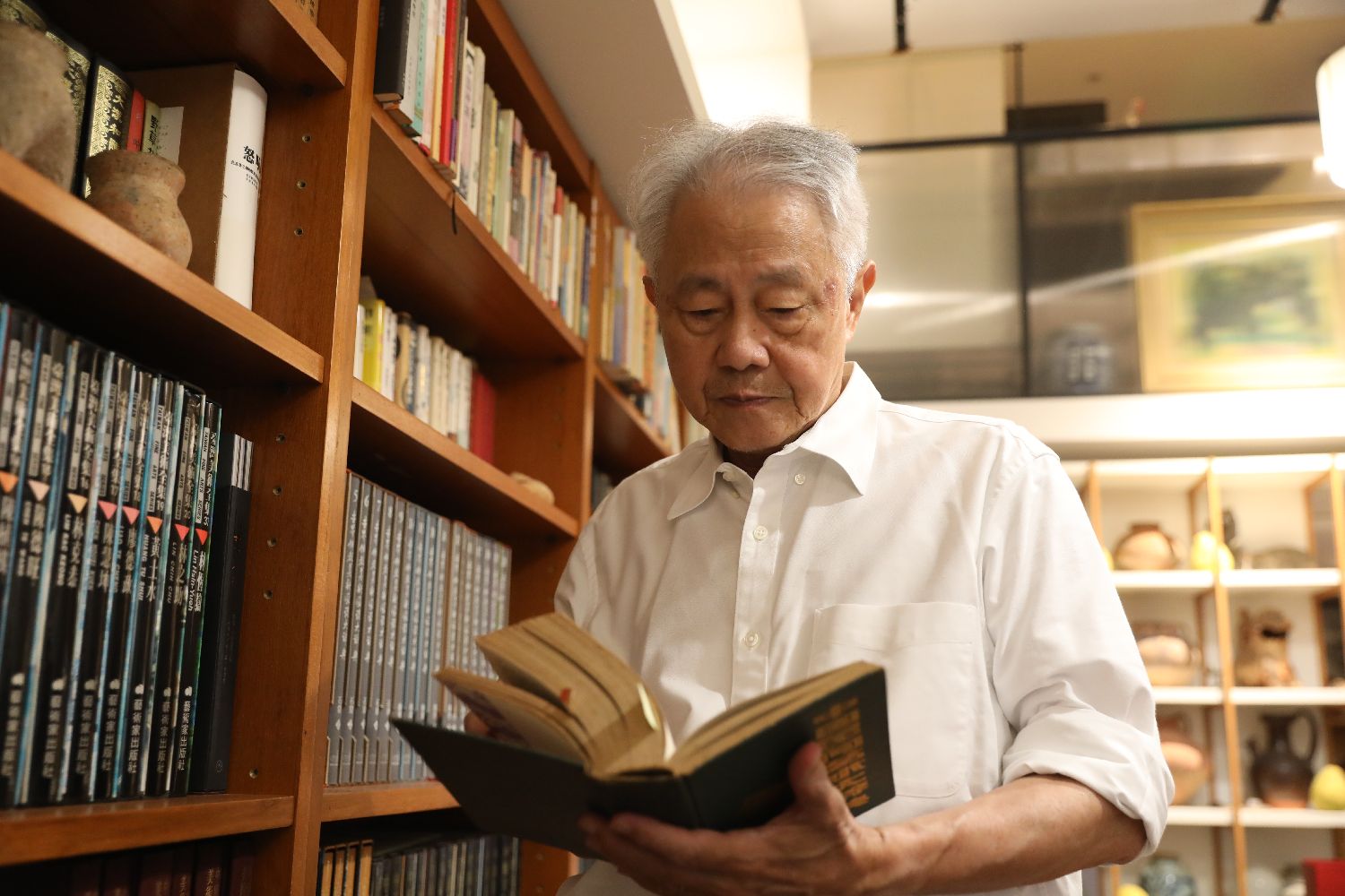 近日,台湾画家庄索之子庄伯和在台北接受中新社记者采访。中新社记者 朱贺 摄