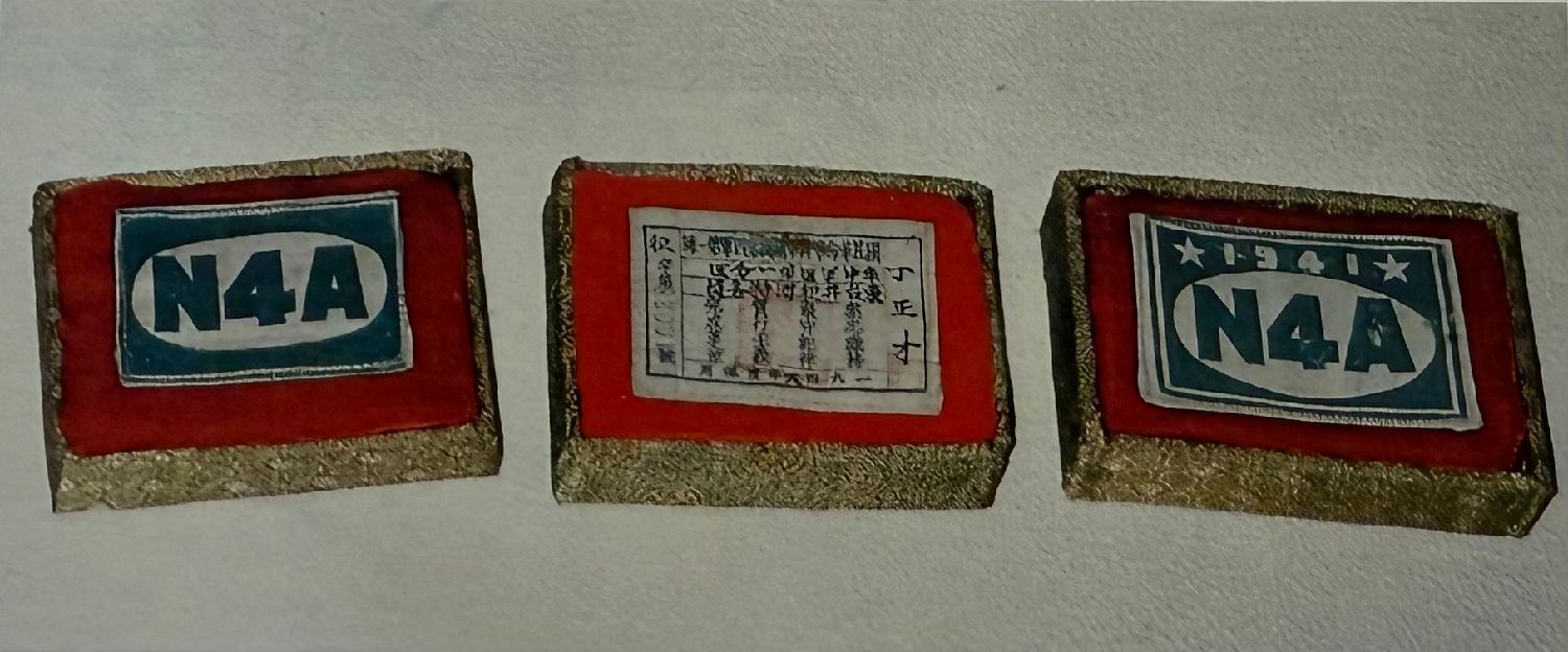 1941年1月新四军在盐城重建军部,为统一部队标识,庄索等人受托设计了一枚蓝白相间的新臂章:蓝色代表蓝天,白色寓意光明、抗战必胜;“N”取自“New”(新);“4”代表“四”字;“A”取自“Army”(军队)。该设计被批量印制,成为新四军佩戴时间最长、影响最深远的标志。